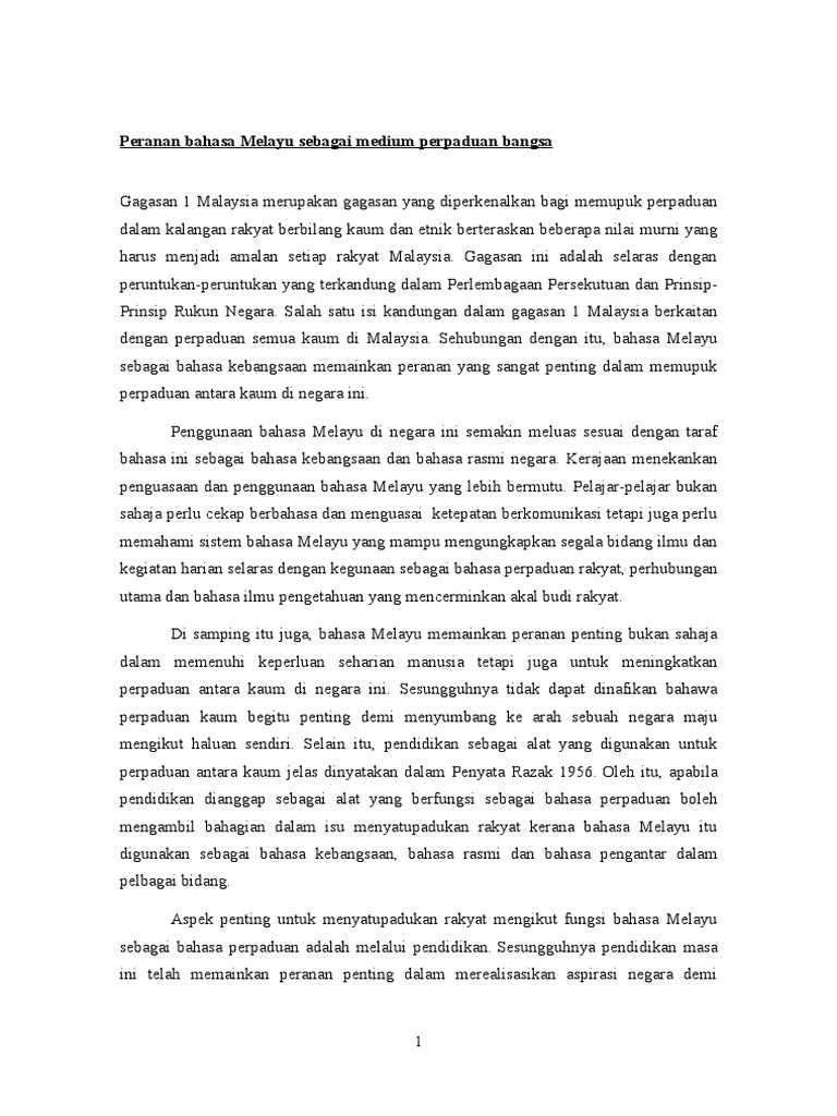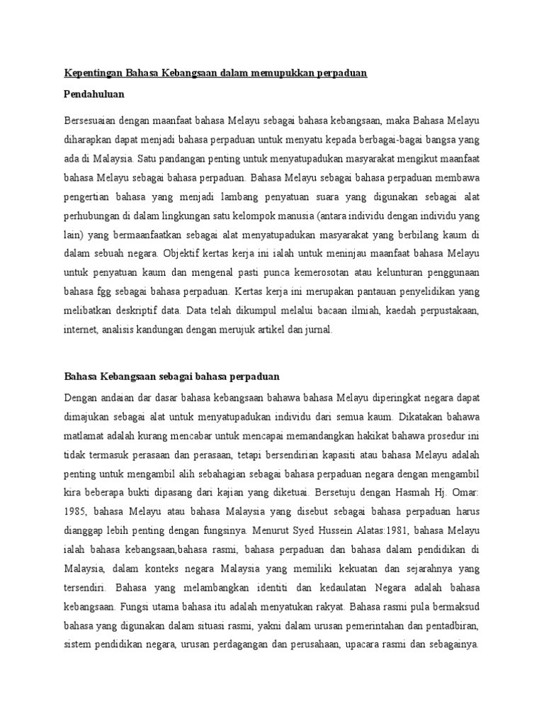 Kepentingan Bahasa Kebangsaan Dalam Memupukkan Perpaduan Pdf